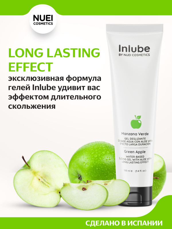 Гель на водной основе с ароматом и вкусом зеленого яблока "Nuei Inlube Green Apple" с алоэ вера, 100ml